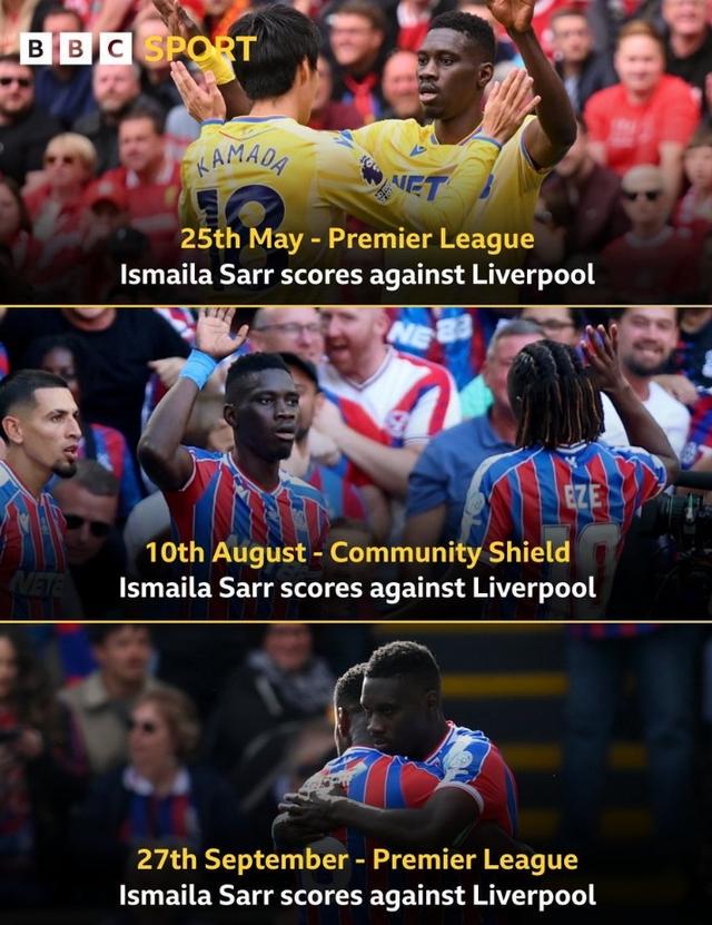 据统计,萨尔在近3次对阵利物浦的比赛中均有进球,分别是上赛季英超1-1双方战平,以及社区盾杯比赛打进关键扳平进球,助球队最终夺冠。