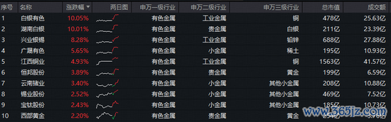图:有色ETF华宝标的指数涨幅前十大成份股