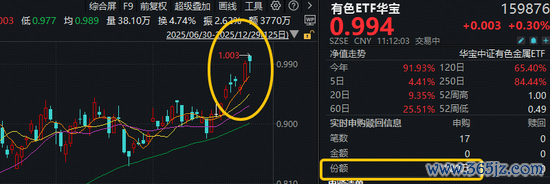 今日(12月29日)揽尽有色金属行业龙头的有色ETF华宝(159876)场内涨幅盘中摸高0.5%继续刷新上市以来的高点,值得关注的是,该ETF获资金实时净申购1020万份钱投网,反映资金看好有色金属板块后市表现,积极进场布局!