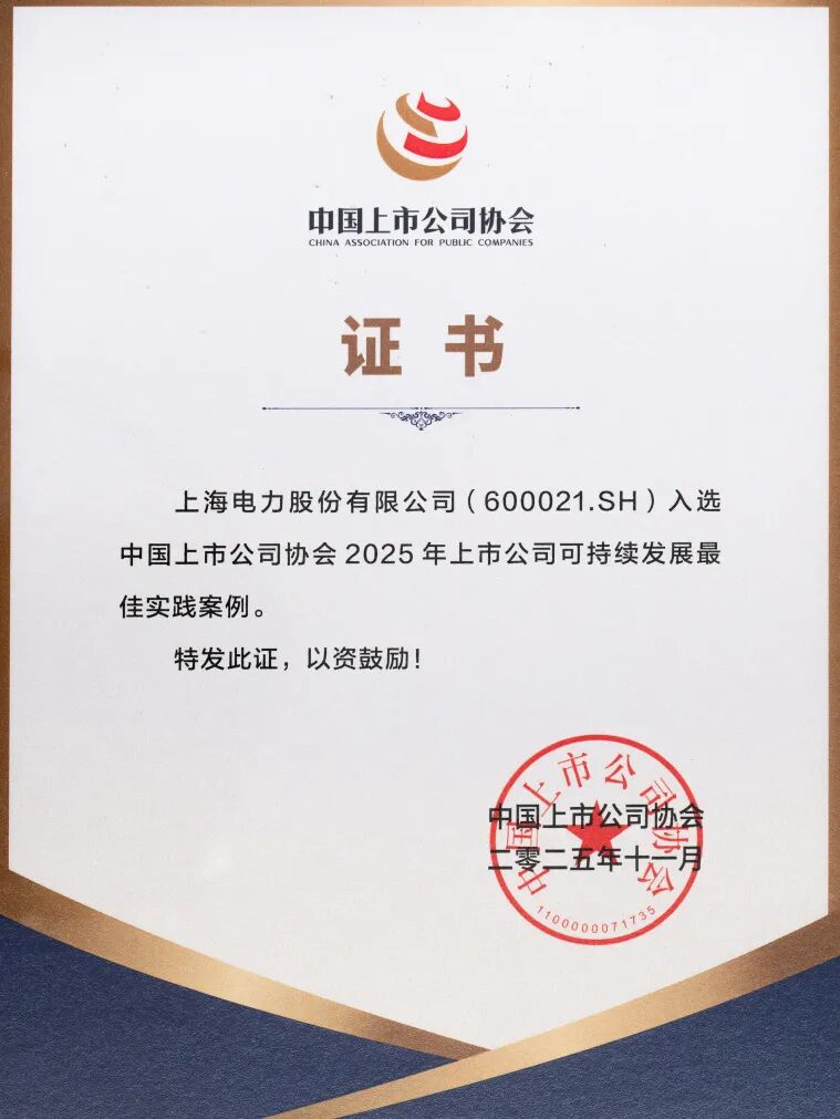 11月18日嗨牛股票,中国上市公司协会在北京举行2025年上市公司可持续发展大会,上海电力(600021)(股票代码600021)入选中上协2025年上市公司“董事会最佳实践案例”和“可持续发展最佳实践案例”。